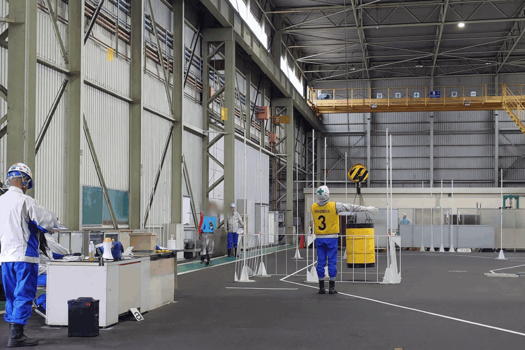 こちらは玉掛け技能 玉掛けは鋼材を積み下ろす際にとても重要な技能となります。